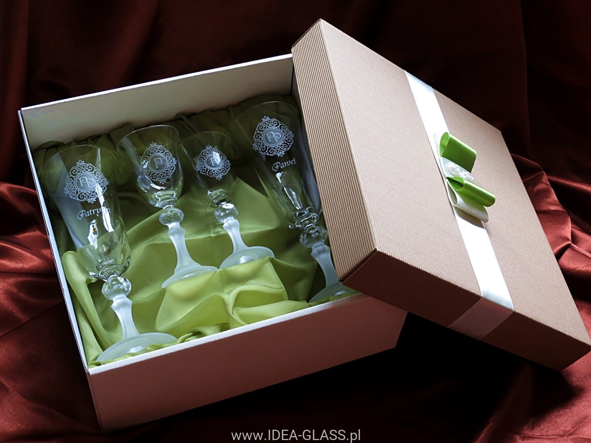 Polecamy kieliszki zapakować u pudełka ozdobne widoczne na zdjęciach lub inne,